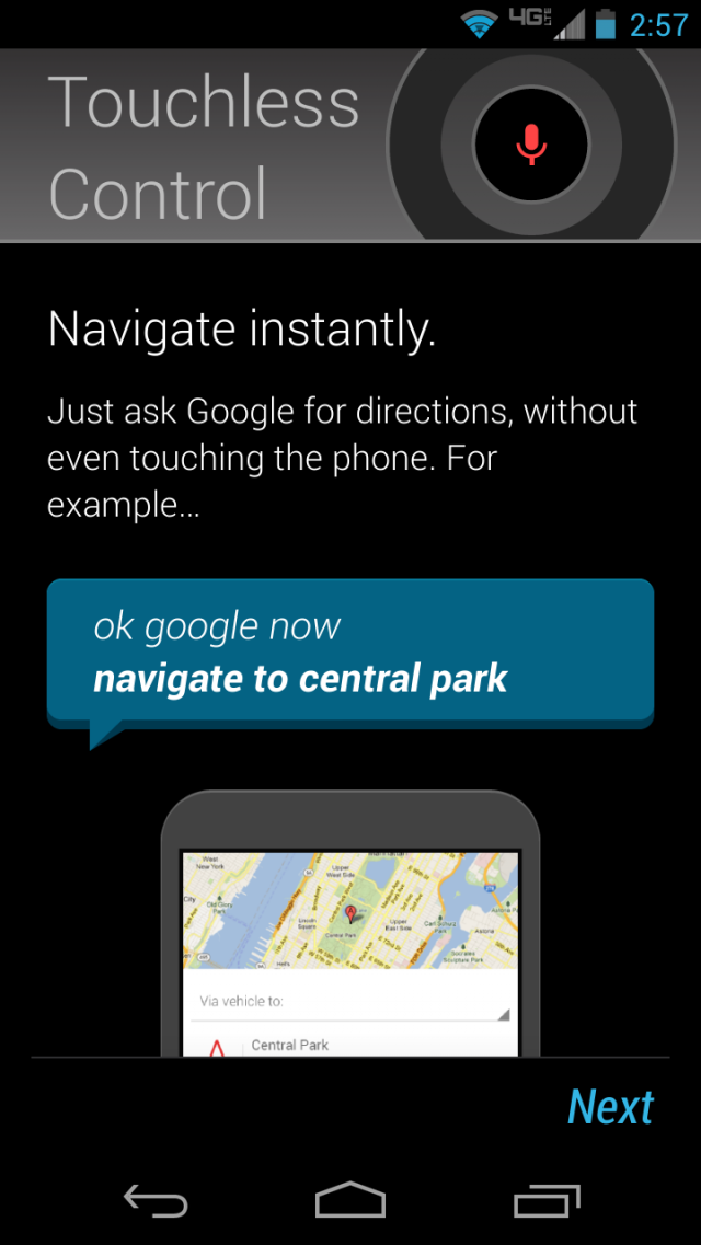 Google Now continues to be a capable personal assistant. It's pretty good at understanding and interpreting most of the things you say—the only things I consistently had trouble with were names that weren't stored somewhere in my contacts list. I was able to perform Google searches, find pizza places, and look up pictures of cats without issue, and SafeSearch will protect you from automatically seeing potentially objectionable images (as I found when I said "OK Google Now, show me pictures of butts"). The touchless controls are a logical extension of what Google Now already does, and we wouldn't be surprised to see the "OK Google Now" voice activation phrase introduced on other Android handsets in the near future, even if other hardware lacks the low-power coprocessor that makes the feature usable in standby mode.
