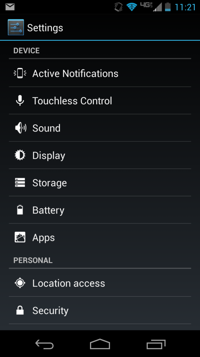 Even Google and Motorola's additions to the operating system are visually consistent with the rest of Android's default icons and typefaces. Extra Settings menu items fit right in with the standard ones, and the quick setup wizards for Moto X-specific features like the active notifications and touchless controls resemble similar wizards elsewhere in Android. Unfortunately, one difference between stock Nexus-style Android and Android on the Moto X is the presence of carrier-preinstalled applications and services. As is typical, many of these can be disabled, but none of them can be totally uninstalled. The other added software features are much more useful.